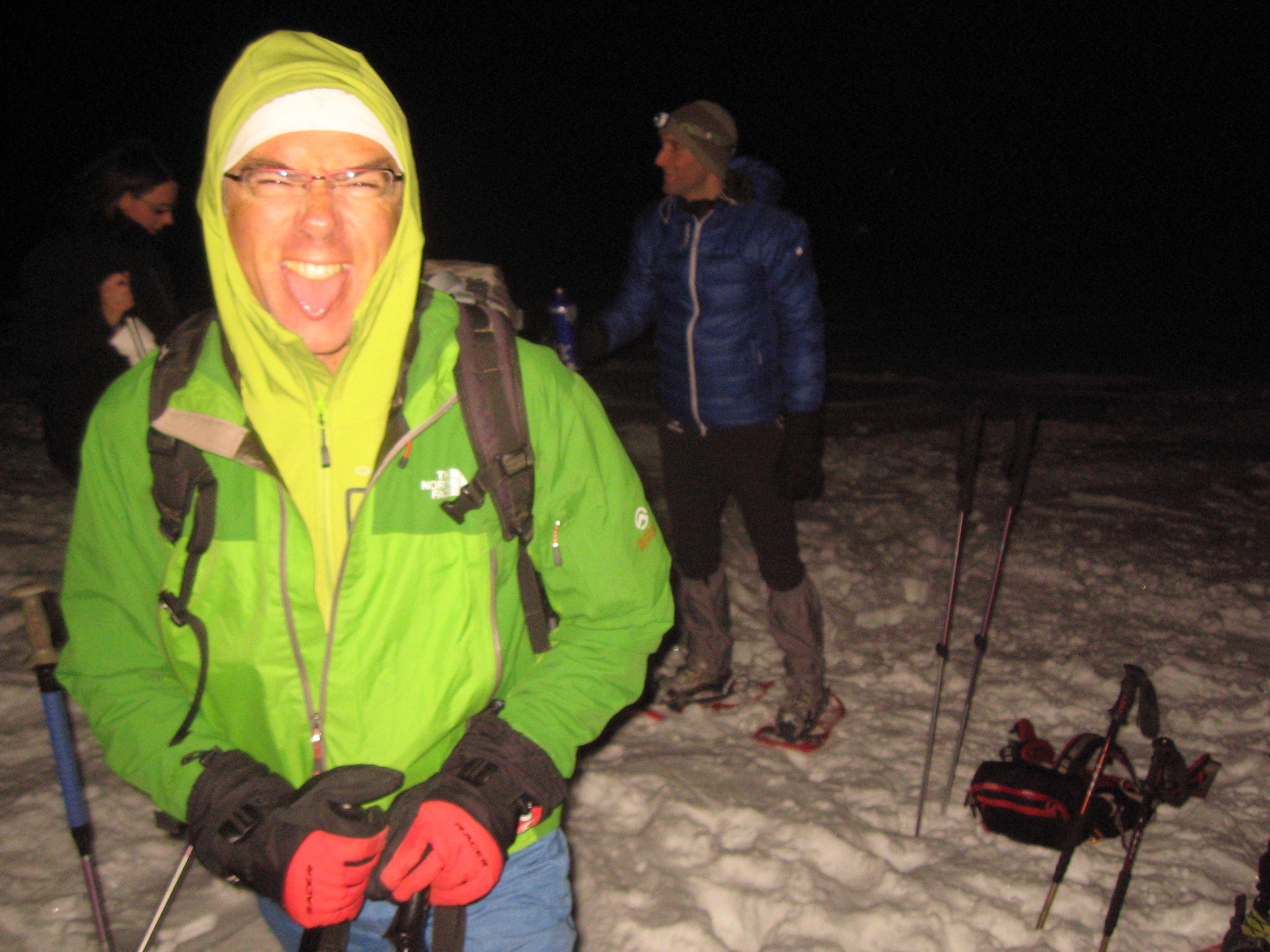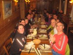 Un repas montagnard convivial et de belles discussions ont animé notre tablée! un succulent fondant au chocolat, une petite poire, un petit coup de vulnéraire en chaussant les raquettes… et c’est parti pour l’ascension du Sulens par la face ouest, toute lune dehors!!