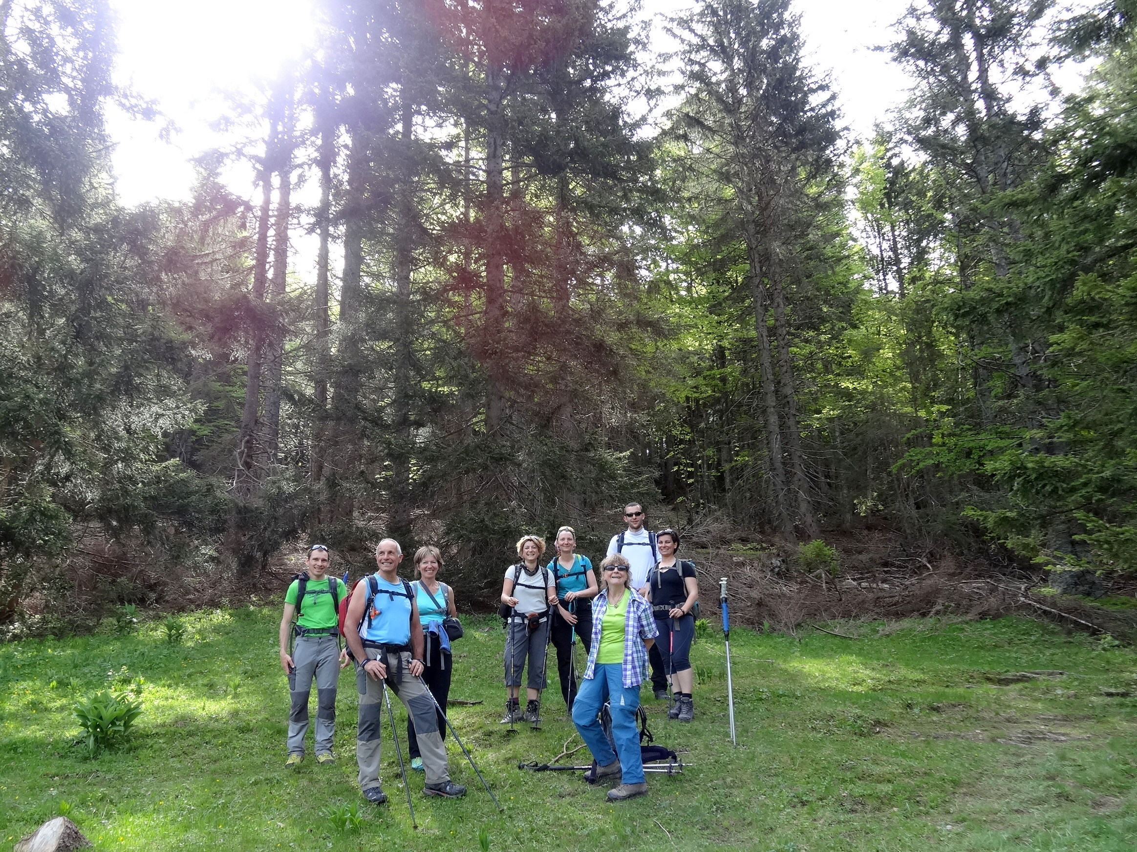Après avoir accompli leur devoir électoral européen … 9 gumistes Laure, Marion, Nathalie, Simone, Virginie, Claude, Frédéric, Julian, Michel  prennent la direction des Bauges , objectif : le Colombier (2045 m) .