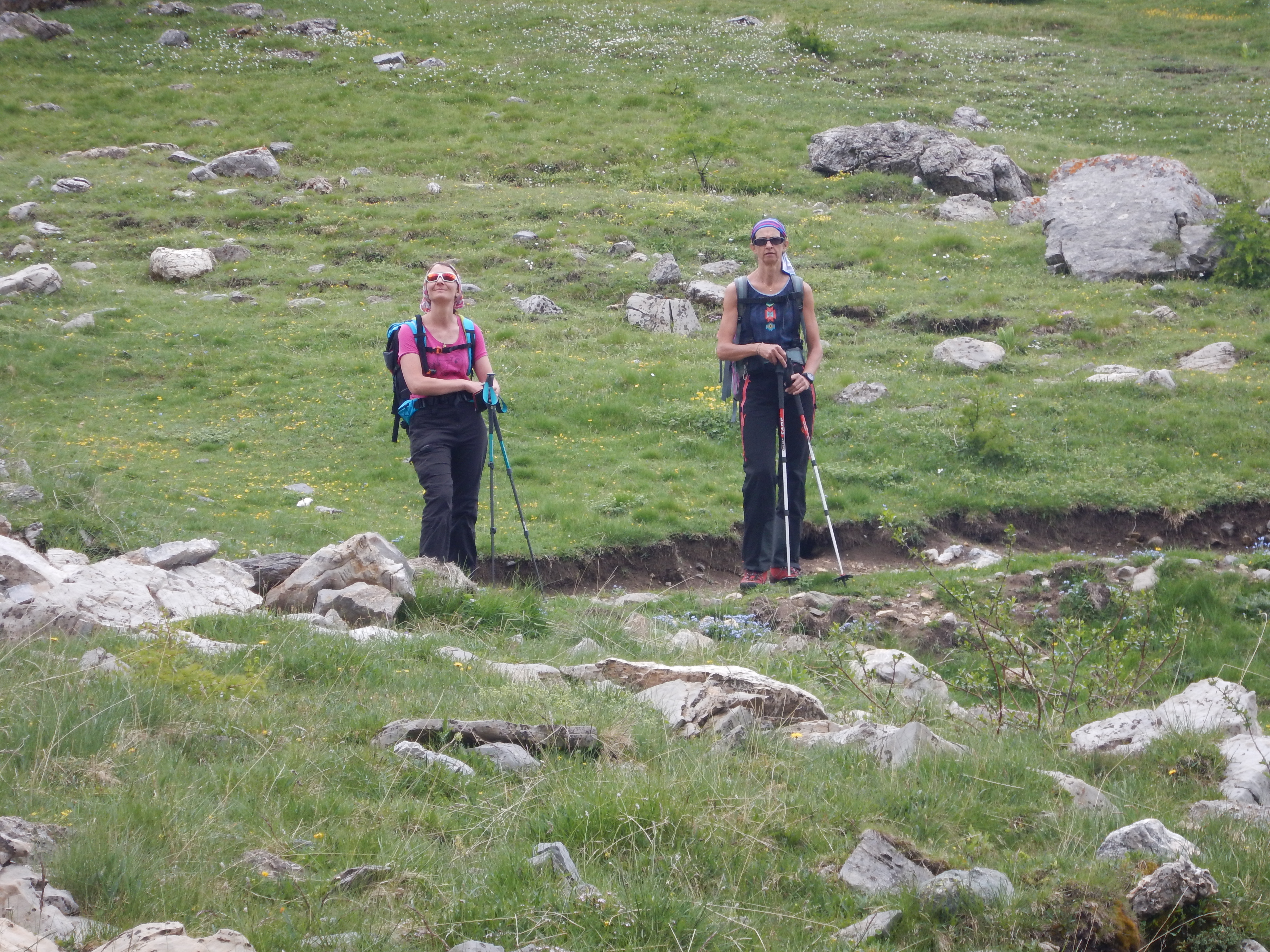 Réveil et départ matinal à 7h en direction du col de l’enchiausa.Nous passons 2 lacs (Visaisa et Apzoi) avant d’attaquer la montée entre pierriers et névés.Arrivés au col, 2 gumistes jouent au bricoleurs et remettent en place la croix indiquant celui-ci.