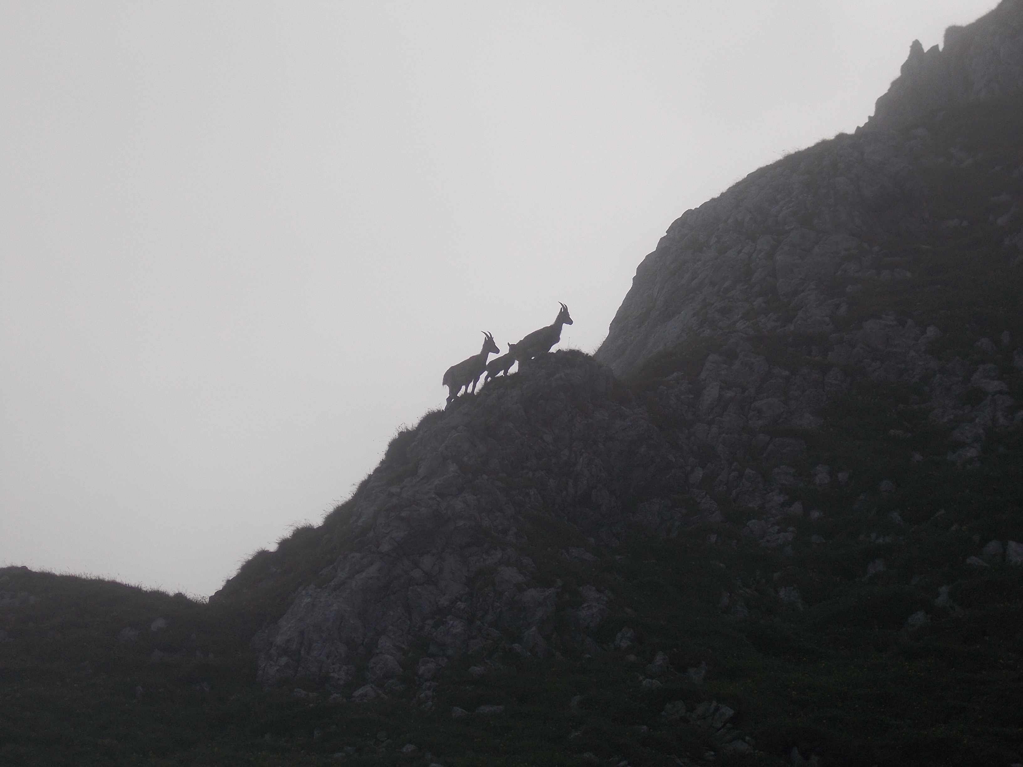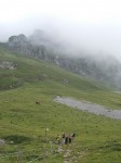 Les chaussures font flop flop et les pantalons collent aux genoux! Le brouillard nous encercle mais c’est sans compter sur les Gumistes avertis que nous sommes, entre carte, alti et feeling nous remontons un chemin qui nous conduit au dessus des chalets d’Oche!