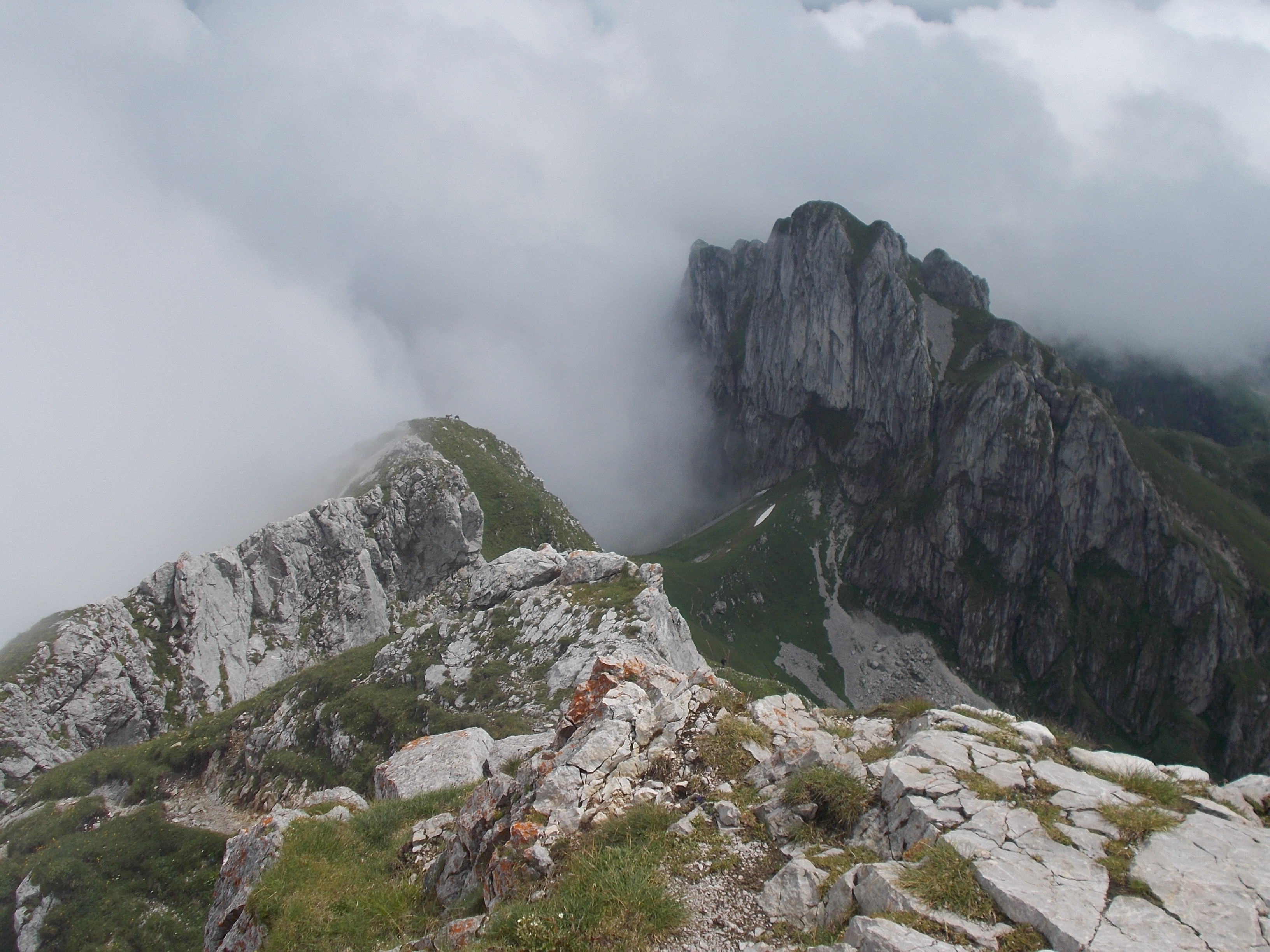 Puis nous attaquons la montée pour le sommet de la Dents 150 m au dessus du refuge. L’arête s’offre à nous, nous jouons les Bouquetins (que nous croiserons par poignées tout au long de ces 2 jours), un câble nous aide à franchir certains passages.