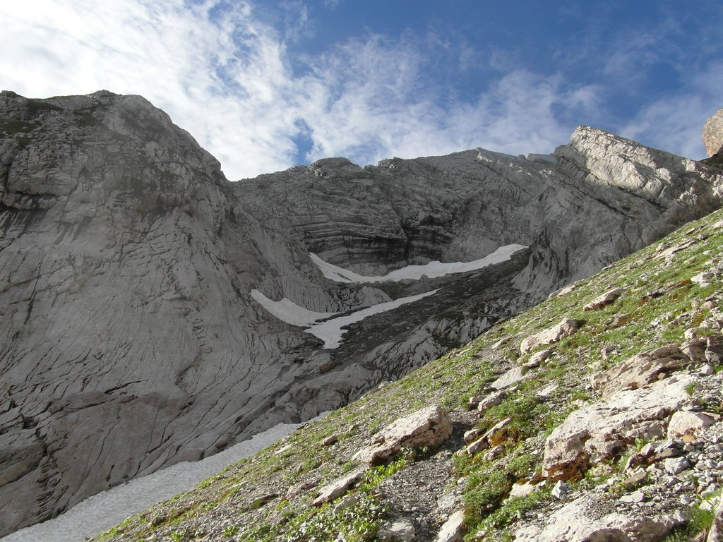 Finalement Xavier va tout gagner. Il y aura bien une cordée devant nous : celle de Fred et Julian. Et il y a encore de la neige au niveau du départ de l’arête. (Enfin plutôt un bout de névé, ça compte ?)