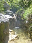 Nous commençons par une petite séance de jardinage de 45 min pour trouver le départ. On aurait dit un topo d’alpi ! Nous sommes bien contents de trouver l’eau. Puis nous enchaînons les passage dans les différentes vasques et petits rappels. J’en profite pour apprendre la clé d’arrêt. Petite pause pour relire le topo de la sortie : pas plus clair qu’à l’aller, nous descendons une bonne partie de la rivière … Pour tout remonter ensuite. Heureusement que Florent a emmené des vivres de courses (un peu de chocolat et des Biscuits) car le petit canyon commence a durer. Nous ressortons par une magnifique faille étroite qui se termine par un pont de tuf digne des ambiances de film fantastique. Notre petite aventure vaut finalement vraiment la peine. Un peu d’escalade pour retrouver le chemin. Il n’y aura pas d’autre canyon dans la journée mais un bon barbecue (bien) arrosé.
