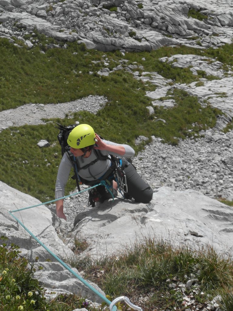 Mais à notre grande surprise, une fois arrivés au pied de la voie, le rocher est sec : nous voilà partis pour l’ « ascension » ! Une journée agrémentée de rencontres sympathiques, dont un couple d’anciens (71 ans pour ceux qui haussent un sourcil ;)) qui nous ont fait profiter de leurs conseils….et parfois de leur aide rapprochée. Sans oublier la pâte de fruits aux coings de Val’ qui réconforte son grimpeur en détresse.