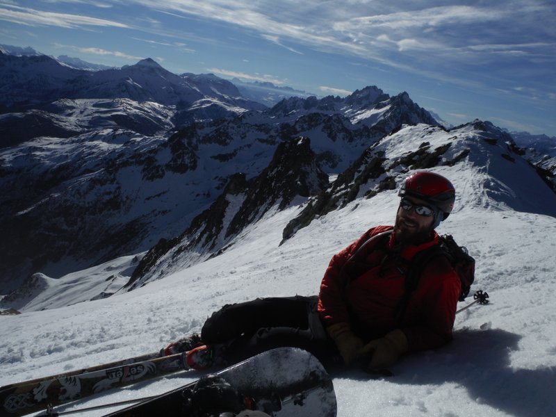 Le soleil commence à monter dans le ciel alors que nous montons tranquillement en voiture au dessus du Biollay, en Lauzière. Il fait beau, il fait chaud, il y a naturellement pas un centimètre carré de neige autour de nous. Mais qu’est-ce qu’on vient faire ici déjà ? Cueillir des champignons ? Admirer des marmottes ? Ramasser quelques brins de génépi ? Pas vraiment, il paraît qu’on est là pour faire du ski ! Deux ou trois virages avant de garer la voiture, la voici, la neige ! Les quantités sont modestes : on remarque des bandes de neige d’au moins 3 centimètres d’épaisseur, mais ça suffira pour monter ! On se met en route rapidement, légèrement pressés par l’envie de distancer un peu les 10 voitures qui viennent d’arriver juste après nous au parking… On remonte la route d’été en coupant les virages et en alternant neige dure et herbe jusqu’à sortir de la forêt. Et là (très bonne) surprise : l’enneigement a l’air bien meilleur pour la suite puisque l’on a un grand champ de neige devant nous, et nous apercevons l’objectif du jour : la pointe de Combe Bronsin. Il a eu le nez creux le Xavier. On monte un peu en direction du Col du loup, puis on bascule main gauche pour une traversée descendante qui nous mènera dans le vallon menant au sommet. Pour ma première sortie de ski de l’année, cette descente avec les peaux et les fixations en mode montée, c’est du gros gros ride… idéal pour retrouver directement de bonnes sensations ! On remonte ensuite le vallon, et la température chauffe. Les conditions sont printanières : neige regelée et dure à la montée, montée au soleil en tee-shirt, crème solaire. On arrive rapidement au sommet où la vue est au top (Ecrins, Vanoise, Mont Blanc, Cervin, etc.) et le pique-nique aussi. On finit sur une note de chocolat et de gnôle pour clôturer ce festin, le temps que ça décaille. Allez, c’est parti mon kiki ! On chausse et on attaque la descente, alternant des passages de très bonne moquette à poils moyens, et des passages en neige un peu plus dure. Ça fait trop plaisir de remonter sur les skis ! On arrête la descente un peu avant les ruines du Chalet de Colomban pour remettre les peaux et pouvoir rebasculer côté Lachat. La suite de la descente est moins bonne, mais nous mène, moyennant quelques rapides déchaussages à 10 mètres de la voiture. Bien content après une belle journée en montagne comme celle-ci ! Quelques instants plus tard au bistrot, Claire nous regarde l’air sérieux en déclarant avoir quelque chose « d’important à nous dire » … va-t-elle annoncer son mariage ? est-elle candidate à la primaire de la gauche ? va-t-elle abandonner le split et se convertir au ski ?… En fait, c’est plutôt « ça vous dirait de faire le compte-rendu de la sortie ? ». LOL comme disent les djeunes. Je crois que je me suis fait avoir.