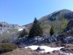 La montée démarre bon train emmenée par une Val douteuse de sa forme physique et qui par conséquent nous faire faire une petite moyenne à 600m/h la première heure !!!! On trouve un peu de neige avant de sortir de la forêt puis une fois atteint les alpages, … Yesssss, le sommet est vierge de neige !!! Il y en a bien de-ci de-là, mais aucun problème pour monter au sommet. Sommet que nous atteignons à 12h06, soit avec 6 minutes d’avance sur l’Horaire (avec un grand H) de pique-nique !