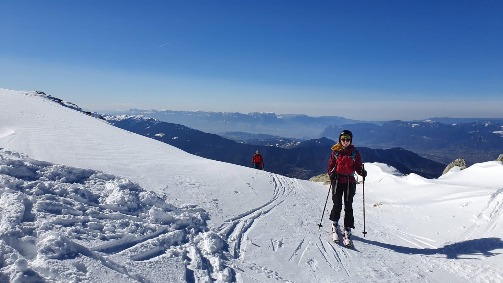 Arrivés au pas du Freydon, un joli couloir de neige légère nous attend. On se régale et on fait de jolies traces à tour de rôle.