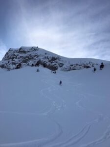La descente est bonne, on enchaine les belles pentes dans de la poudreuse « mi-légère ».