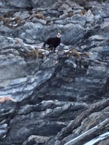 Un peu avant le col un chamois nous regarde de haut, il était en train de prendre son petit déjeuner.