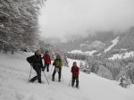 Après une votation nous décidons , compte tenu de la météo et de l’heure , de ne pas finir la boucle prévue mais de faire au retour une variante « raquettes pente raide » que l’ épaisseur de neige fraiche permet .