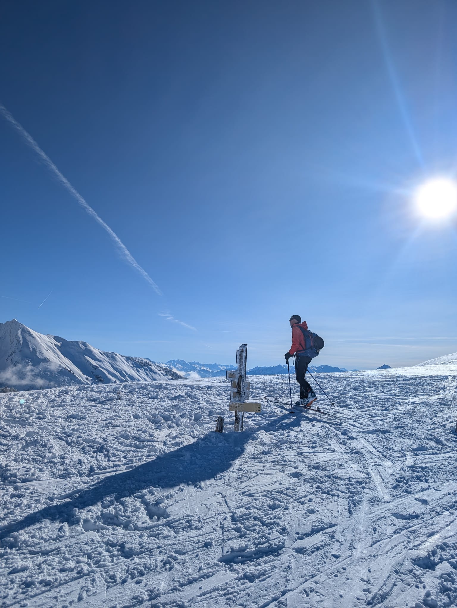 récompense est immense : un panorama grandiose sur la chaîne des Aravis, du Charvin à la Pointe