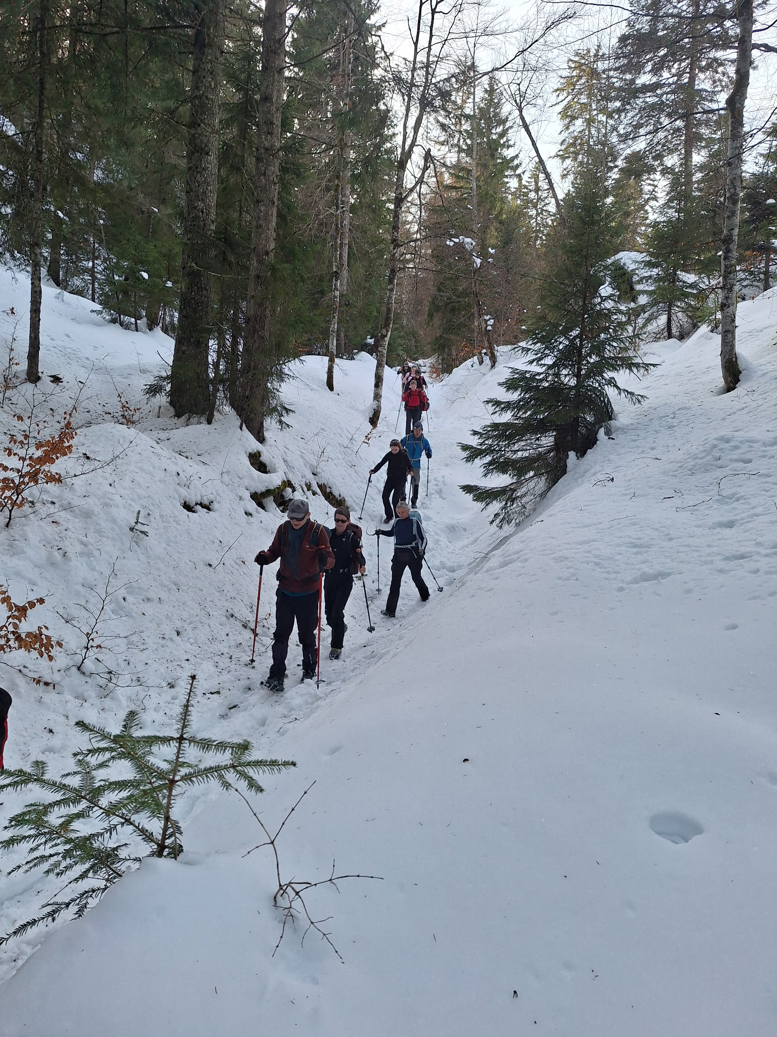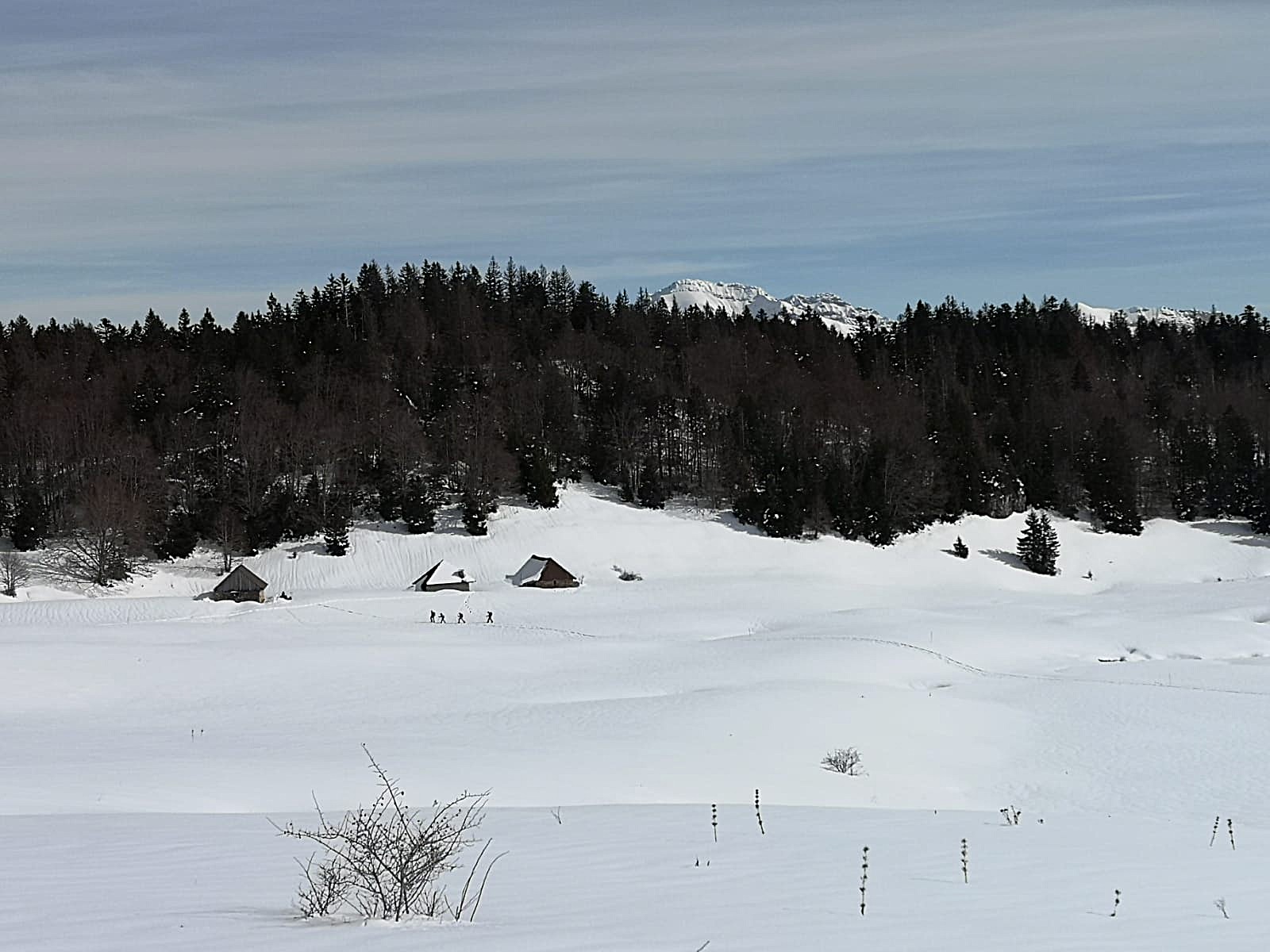 – D’abord une belle montée régulière en forêt jusqu’au chalet de la Plate, très bon accueil… apéro-vin chaud et autres breuvages…