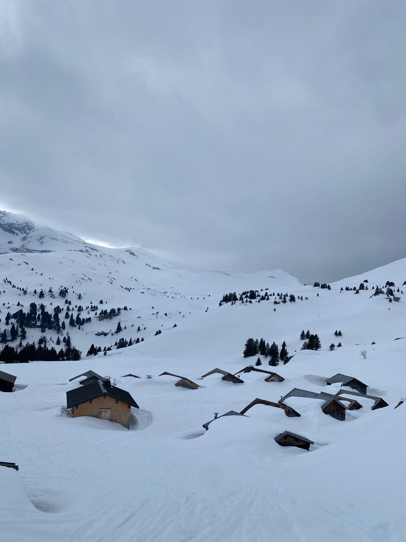 Nous nous retrouvons et continuons notre descente tous ensemble telle une équipe soudée depuis des millions d’années. Une pause casse croûte s’impose et ce n’est pas pour déplaire à notre palais que Freddy le vaillant cuistot nous offre ses cookies maison arrosés par une pointe de gnole du père Bert. Avec ça dans le bide autant vous dire qu’on était d’attaque pour remonter jusqu’aux chalets de cherentes avant d’entamer notre dernière et ultime descente dans la neige croutée.